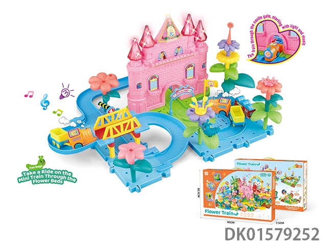 Puzzle track diy flower arrangement castle induction track lighting music electric train track building blocks 48pcs