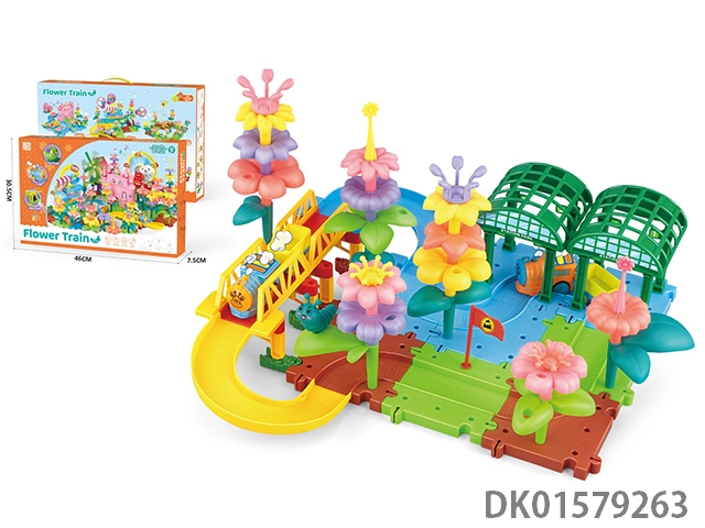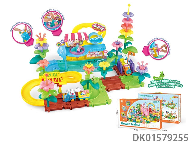 Home furnishing supermarket shop garden flower arrangement electric train track building blocks 73pcs