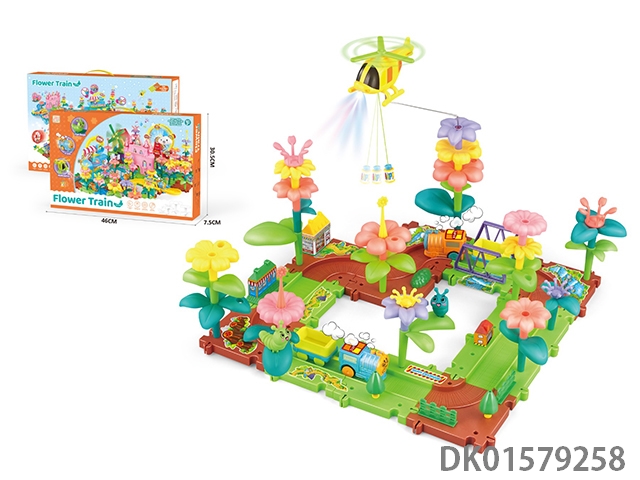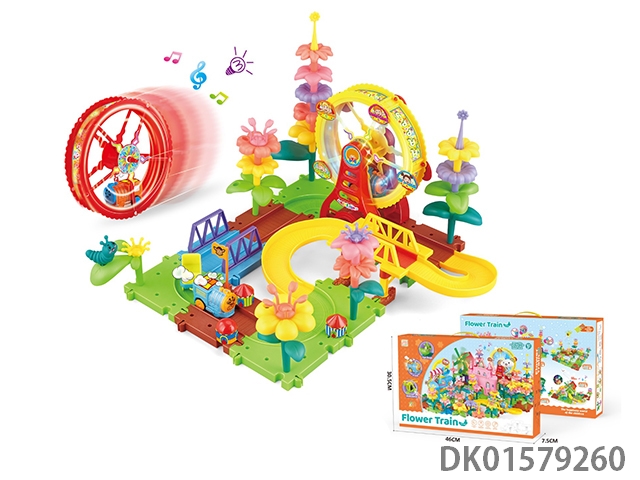 Flower garden intelligence electric train airplane light twinkle track building blocks 63pcs