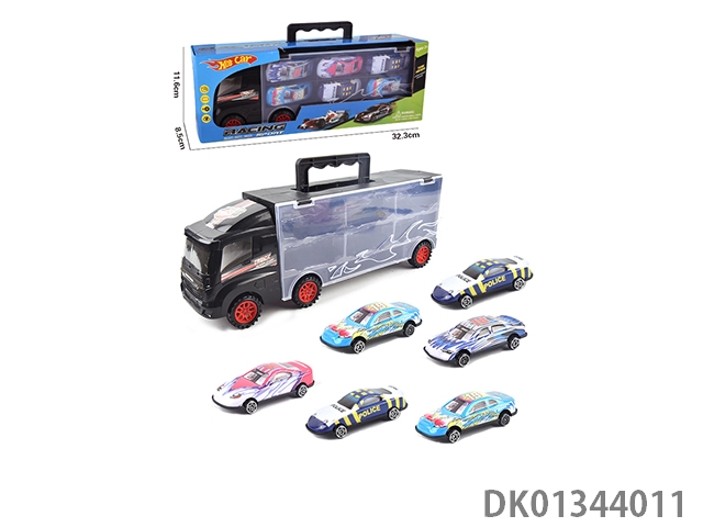 Handheld container sliding trailer with 6 sliding alloy racing cars