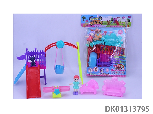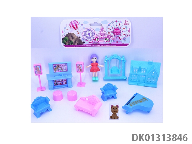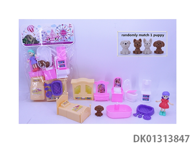 Little girl playground sofa set and puppy (2 girls mixed)