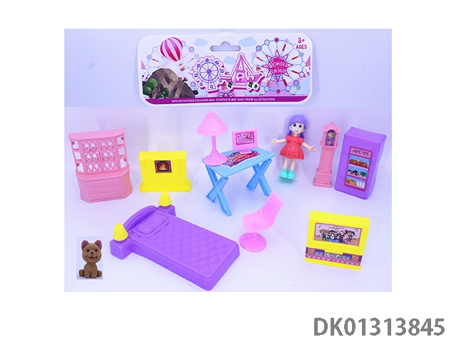Little girl tv furniture set and 1 little dog (2 girls mixed)
