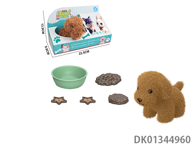 Plush toy pet dog and feeding set