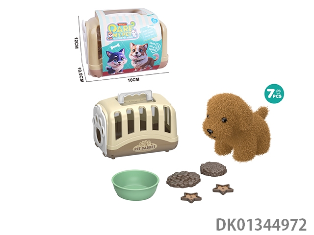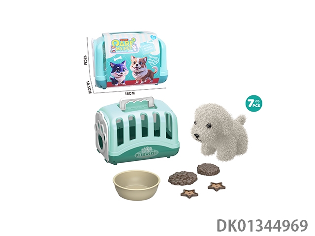 Plush toy pet dog feeding set and hand-held dog cage