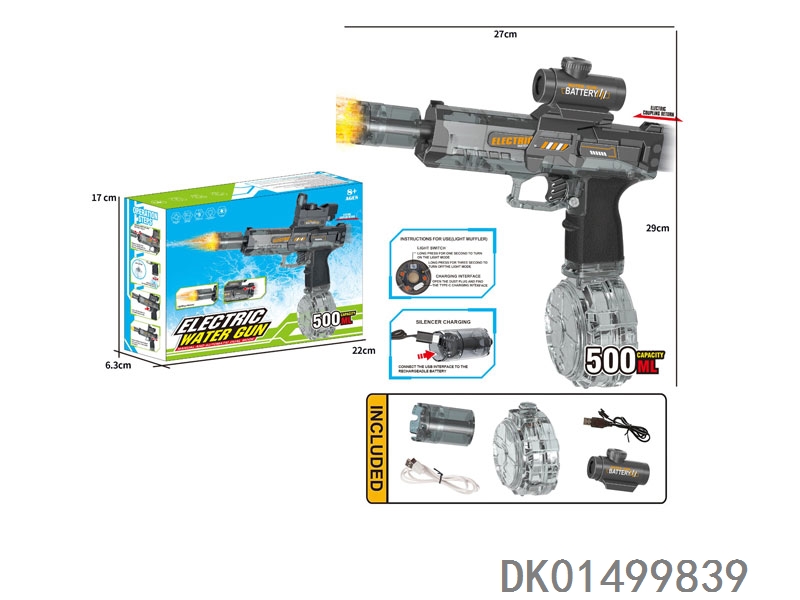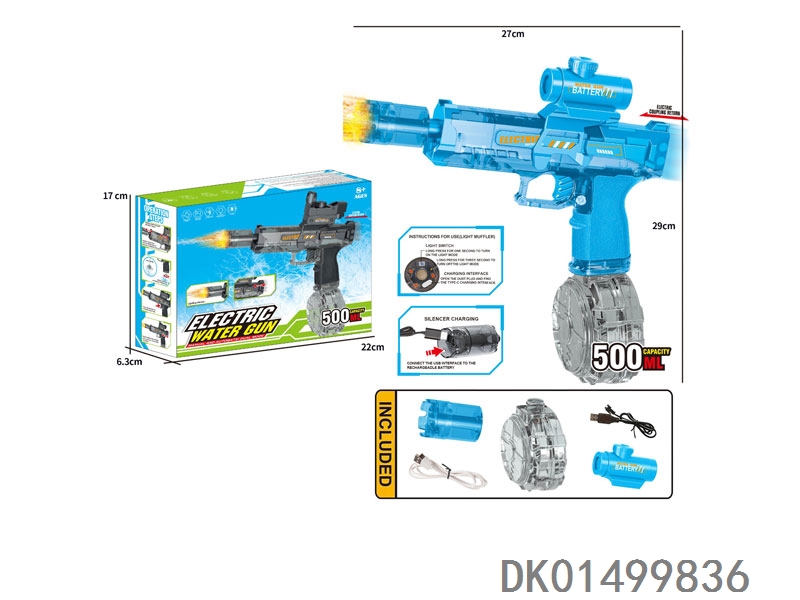 Electric water gun (rechargeable) with flashing fire light (gun pack electric/1 3.7v single cylindrical battery/1 usb) for summer water battle, new product for e-commerce cross border