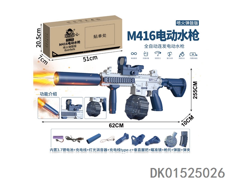 The second-generation spitfire version fully automatic continuous electric m416 water gun (with lithium battery) has a drum capacity of 434 milliliters 58 milliliters magazine