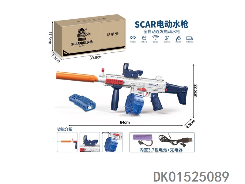 Scar water gun magazine version (equipped with lithium battery data cable, 1 drum and 1 magazine)