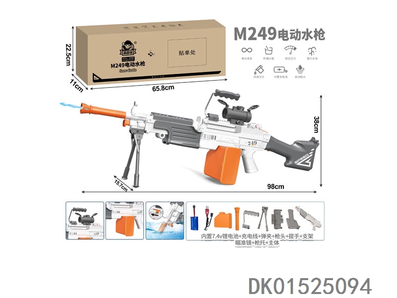 M249 electric water gun (with built-in 7.4v lithium battery, data cable, 1 magazine, and 1 sight) with a water tank capacity of 660 milliliters