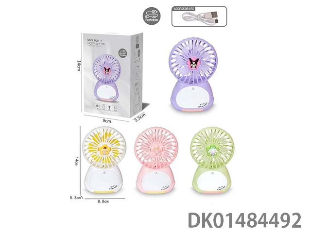 Night light rope animal cartoon charging fan with 2 levels (android charging cable)