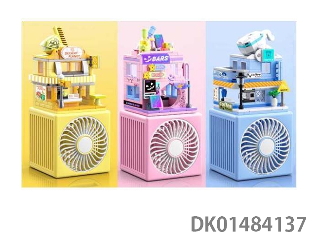 Building block cartoon charging fan