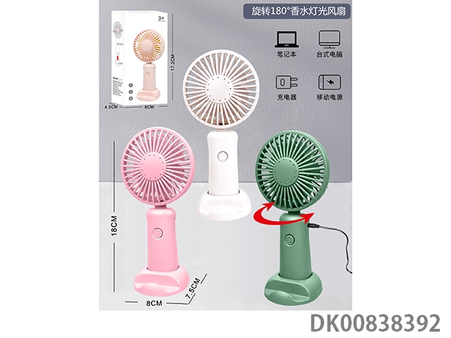 Colorful lights flashing with perfume, folding mobile phone bracket, small household appliances fan (10cm4 flap fan blades, built-in lithium battery, 0.5 meter usb charging line, 1 aromatic tablets, decomposing mobile phone bracket base)
