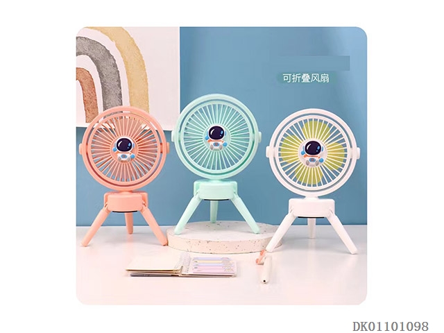 Cartoon astronaut folding small round fan