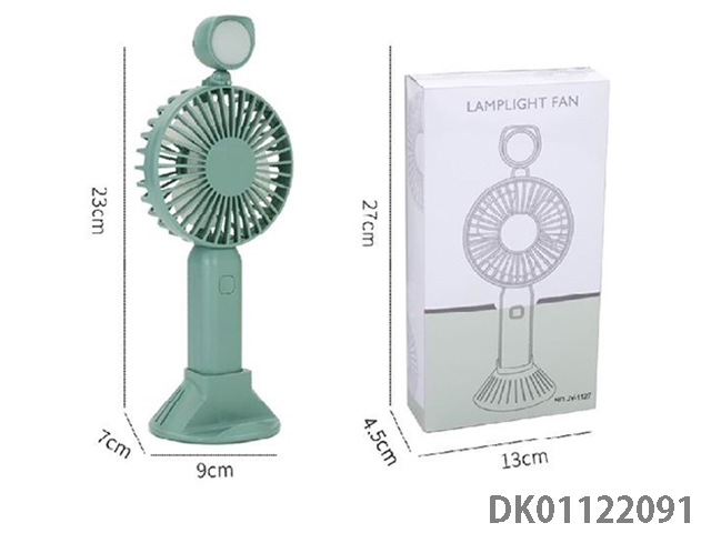 Handheld electric fan with three speed air volume adjustment, with lighting, can stand, fold horizontally, and be mixed in three colors