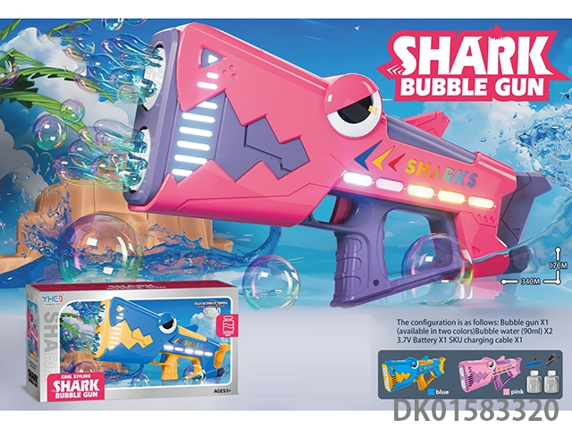 24 Hole shark bubble gun (equipped with 3.7v lithium battery and charging cable, and 2 bottles of 90ml bubble water)