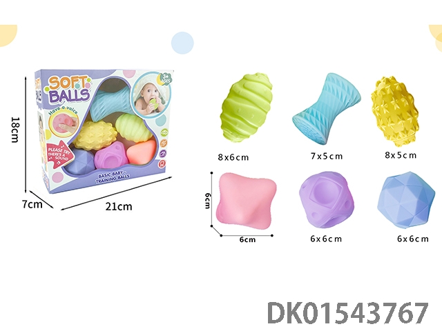 6-Piece macaron new rainbow ball baby massage rubber ball water play toy