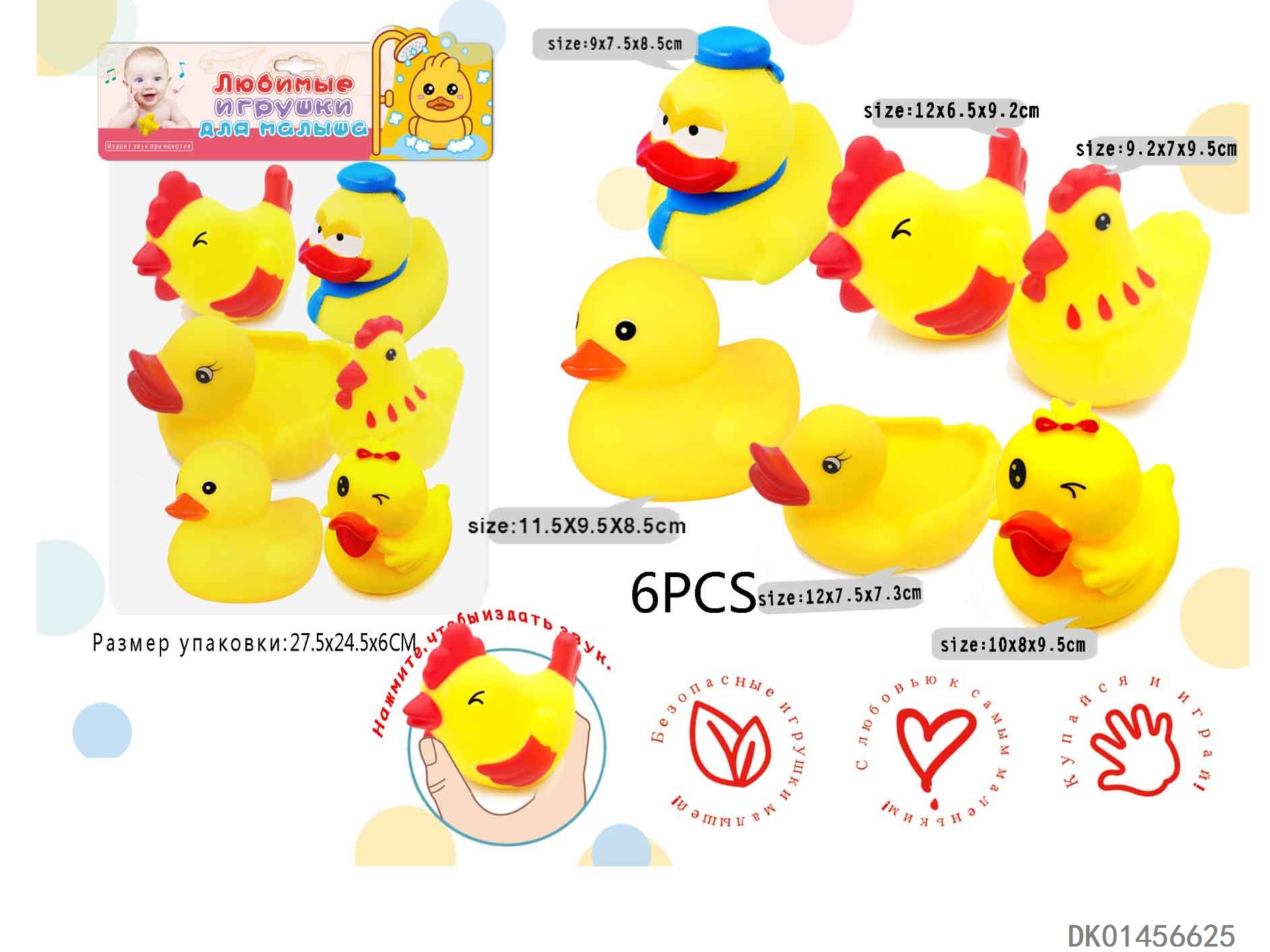 6 Environmentally friendly large livestock ducks, rubber coated water animals with bb whistle