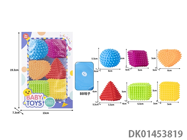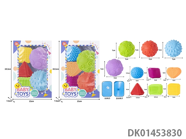 New vinyl puzzle hand gripping ball recognition, color recognition, feeling, player gripping tooth tools, pinching, music, bb whistle sound soft rubber