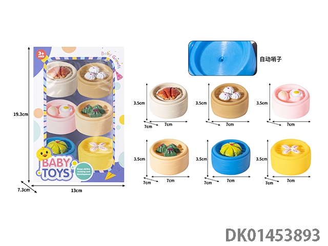 New type of enamel puzzle simulation steamer harbor style tea steamed dumplings bb whistle sound soft glue paddling toys kneading music