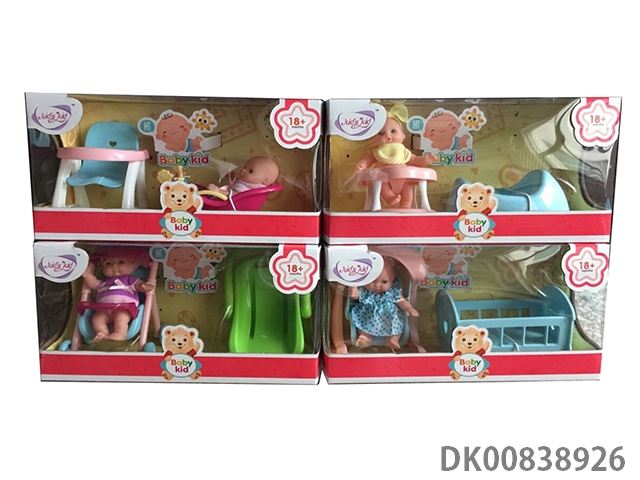 12 Inch straight-filled cotton body glue hand and foot doll with dining chair no ic2 mixed
