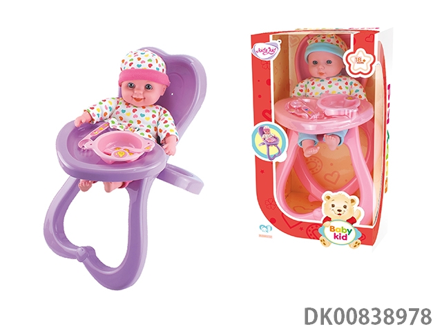 12 Inch straight-filled cotton body glue hand and foot doll with dining chair with ic2 mixed