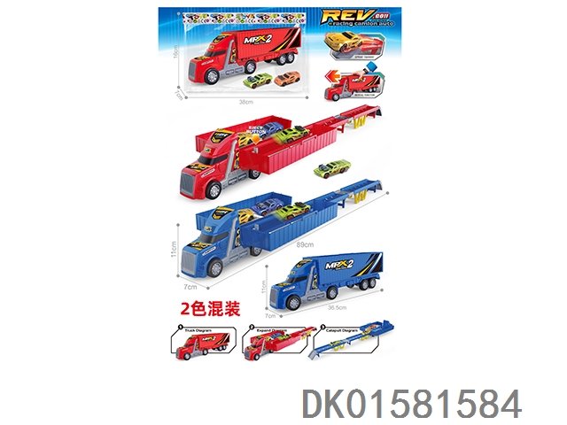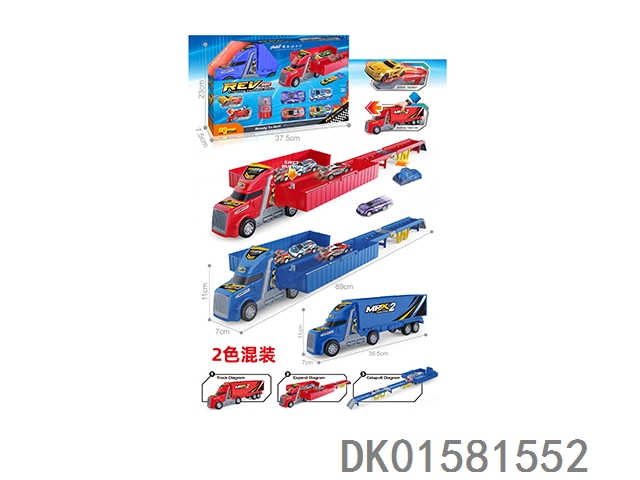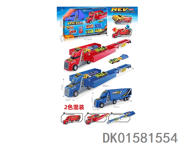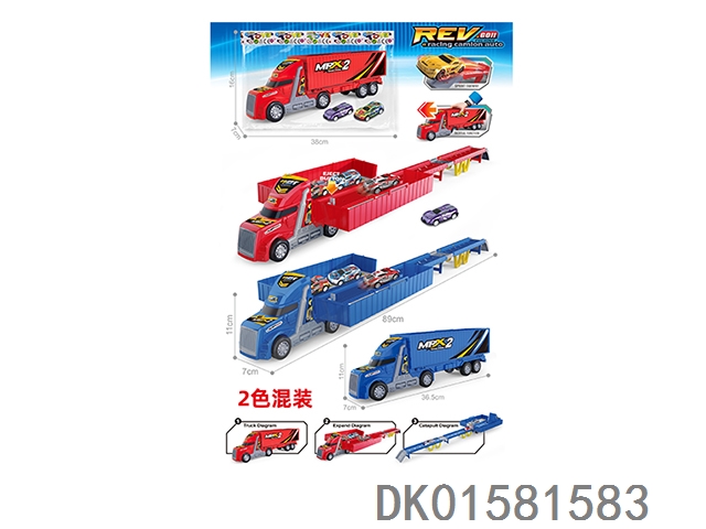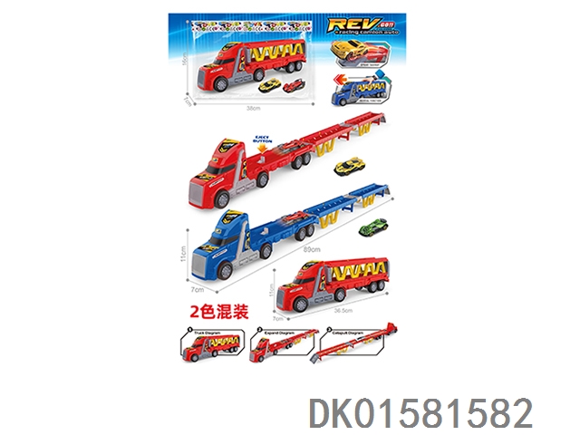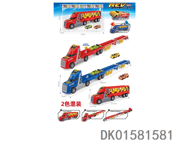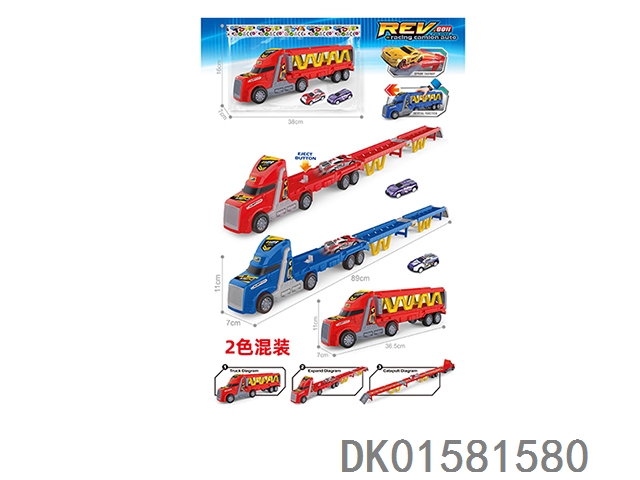 Inertial lighting, music, Dongfang Tou double decker car carrier, 2 pieces (single color set)