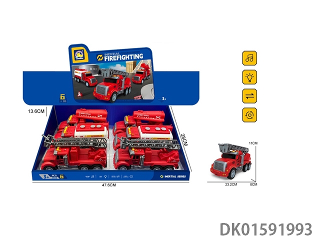 Inertial sound and light fire trucks, mixed with 3 models, 6 pieces/box