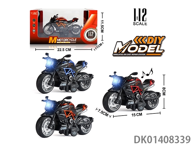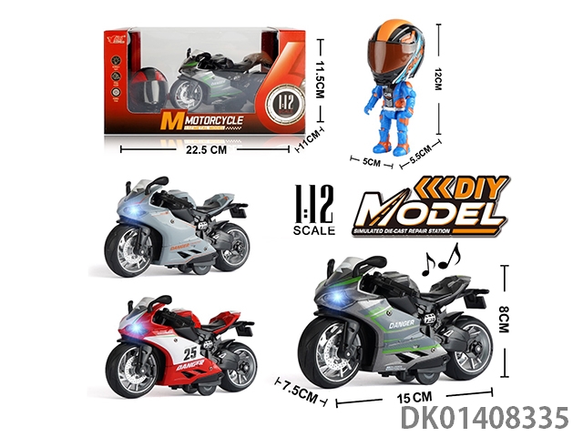 1: 12 Alloy regenerative gusta motorcycle with lights, music, and 3 colors mixed (with helmet)