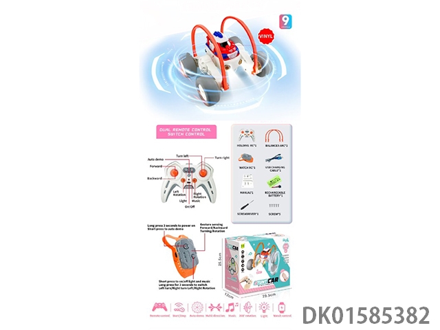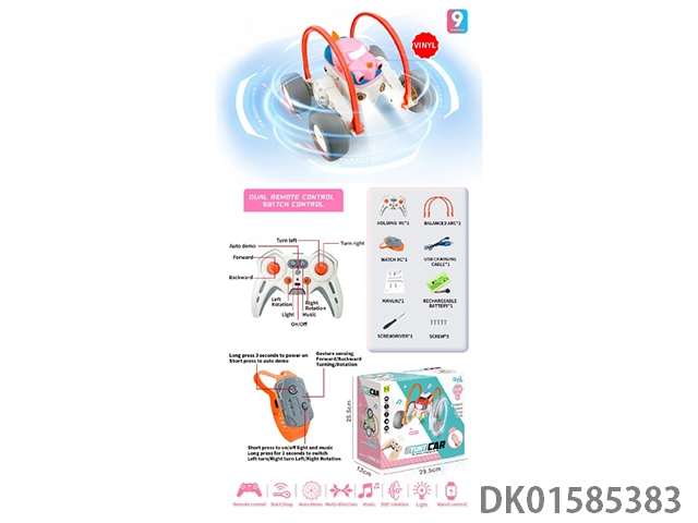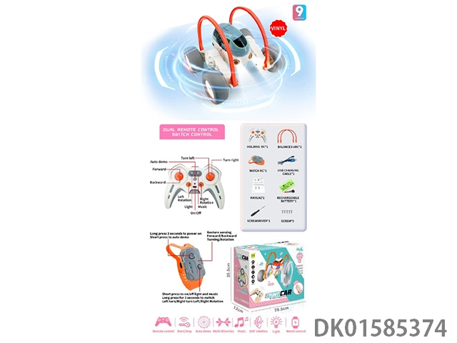 1: 12 9-Way 2.4g lighting, music, 360 degree dual control stunt remote control car