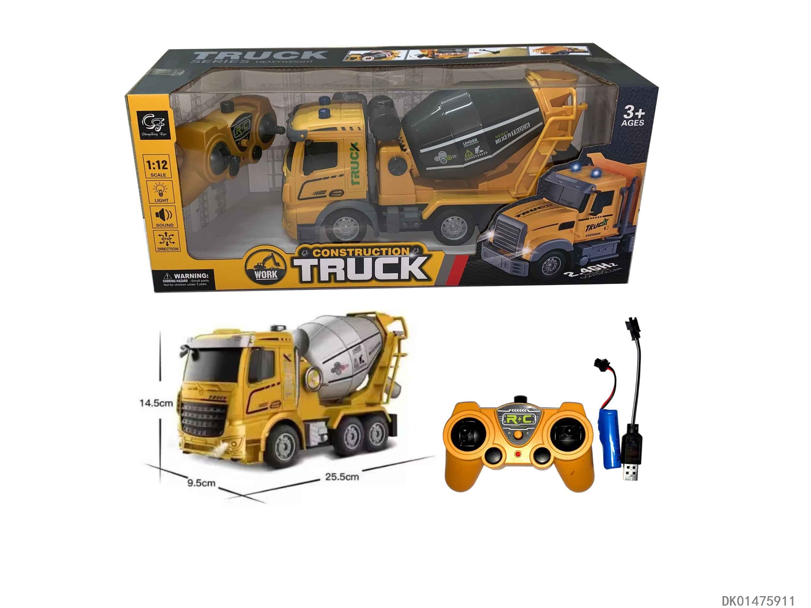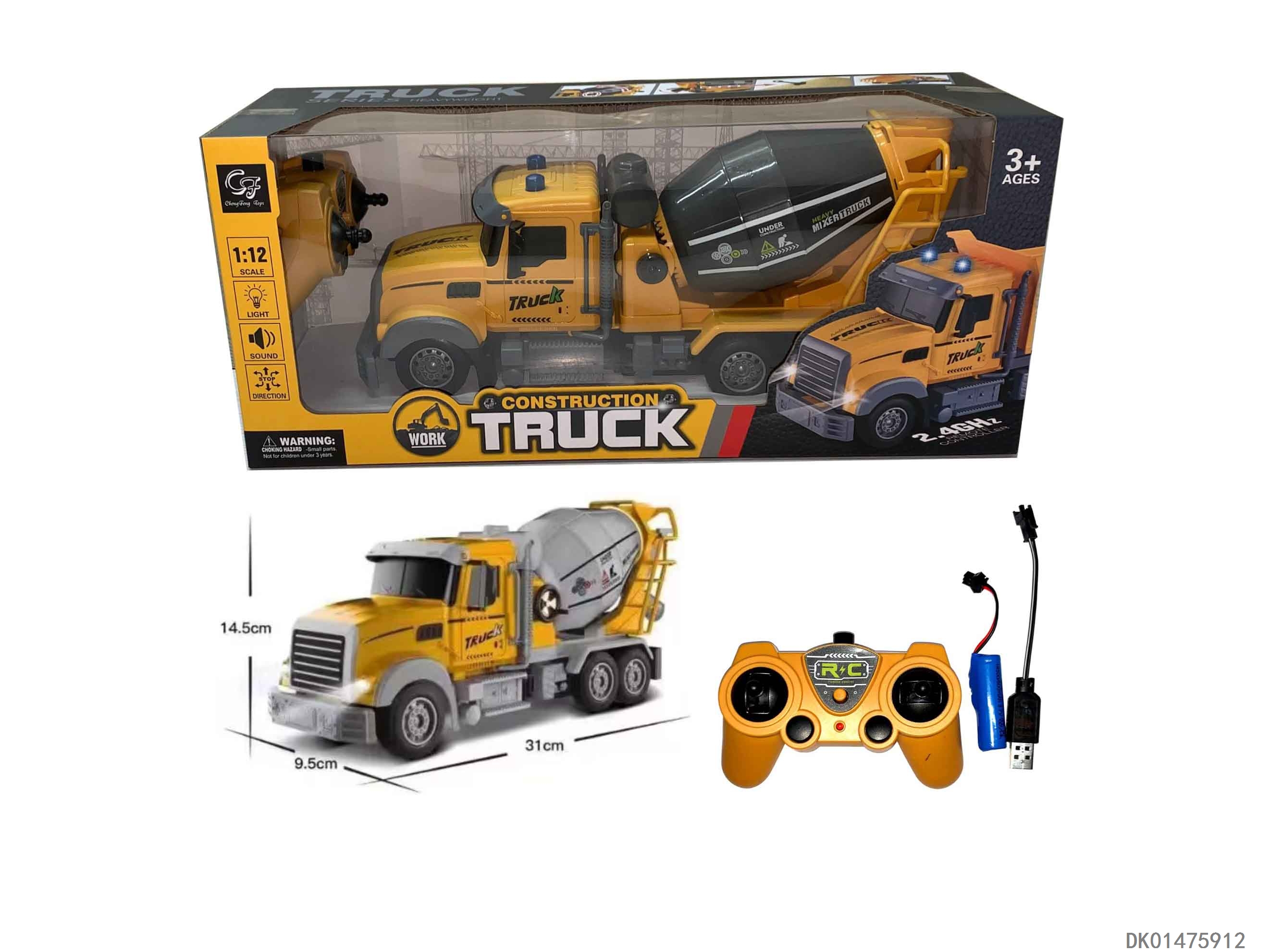 2.4G six way remote control with sound, light, and mixer truck