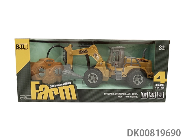 1: 30 Remote control 4-way light high arm digging farmer’s car (without electricity) single yellow