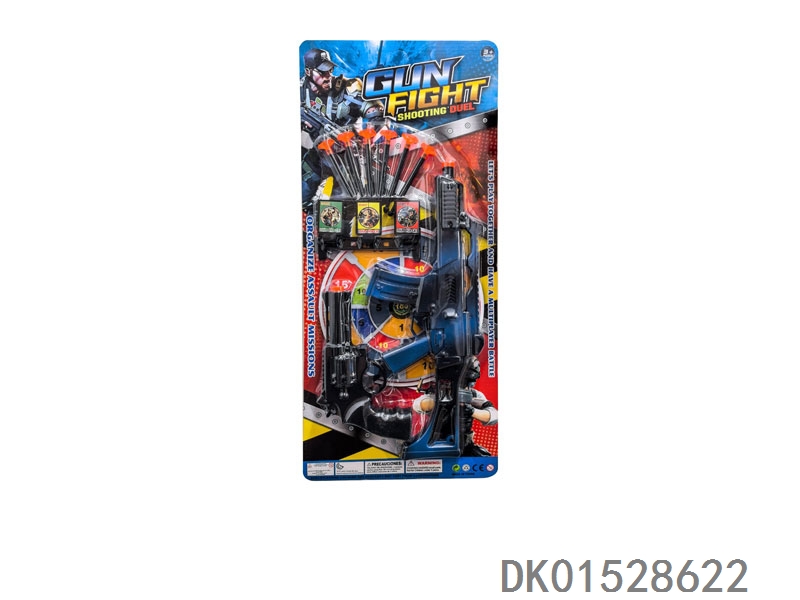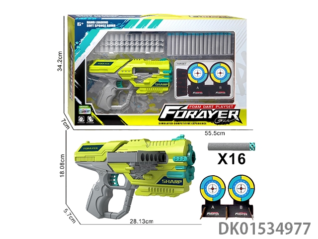Soft bullet gun (equipped with 16 flat headed bullets) (1 cardboard target)