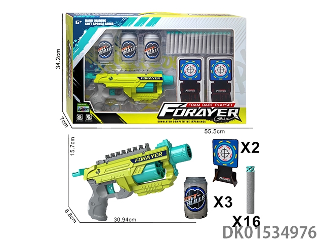 Soft bullet gun (equipped with 16 flat head bullets) (4 beverage bottles)