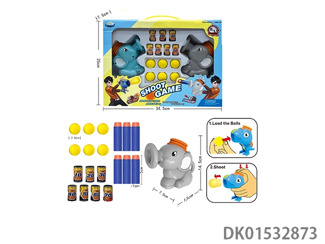 2-In-1 air pressure cartoon elephant fighting set with 6 round bullets and 3 long bullets mixed in two colors