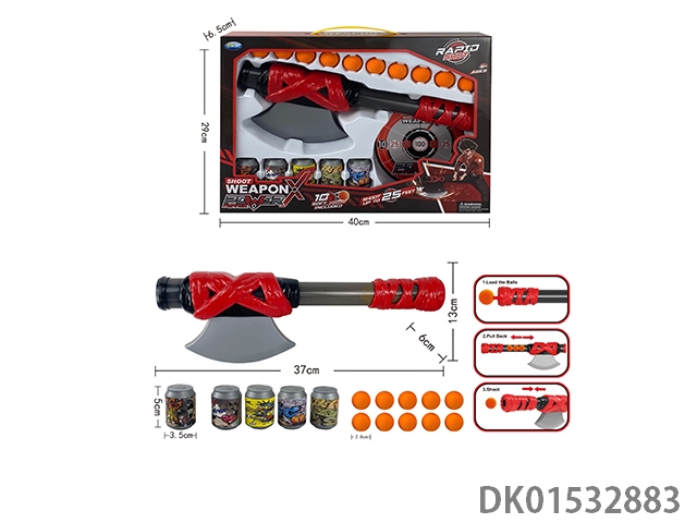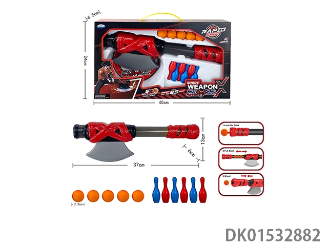 Axe gun, 5 eva bullets, and 6 bowling balls