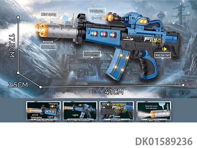Charge king electric sound spray light telescopic rotating gun (2-color mixed)
