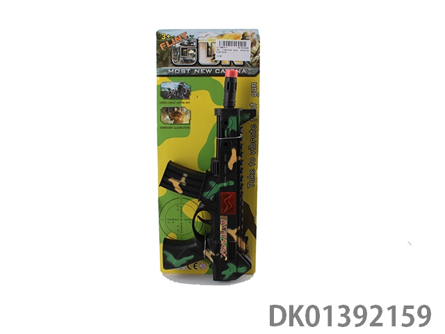 Camouflage vibrating flint gun with shoulder strap and assault cap