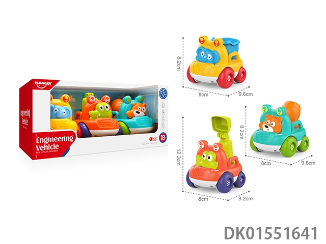 Cartoon engineering vehicles (mixer trucks, dump trucks, and excavators)