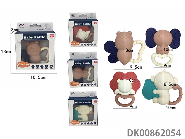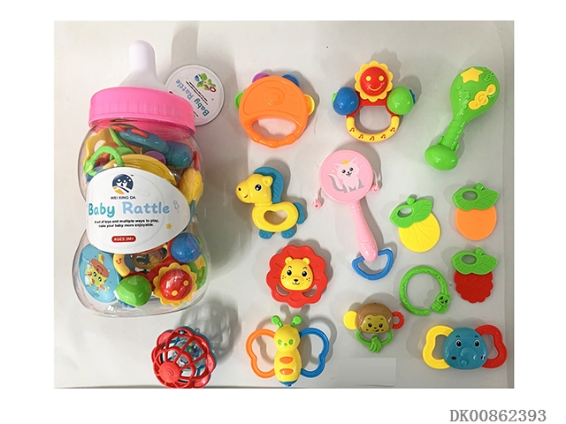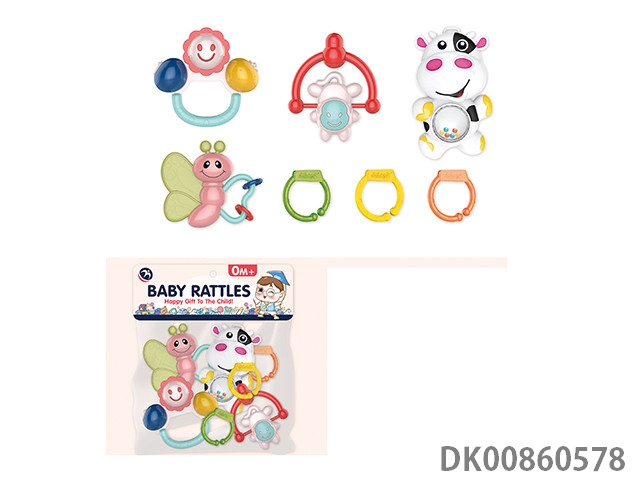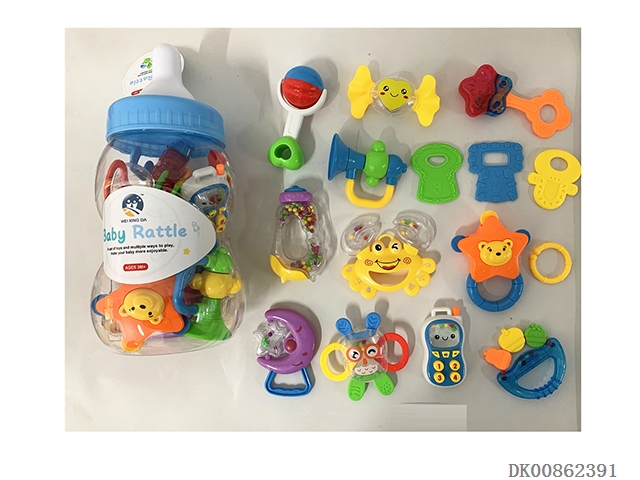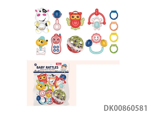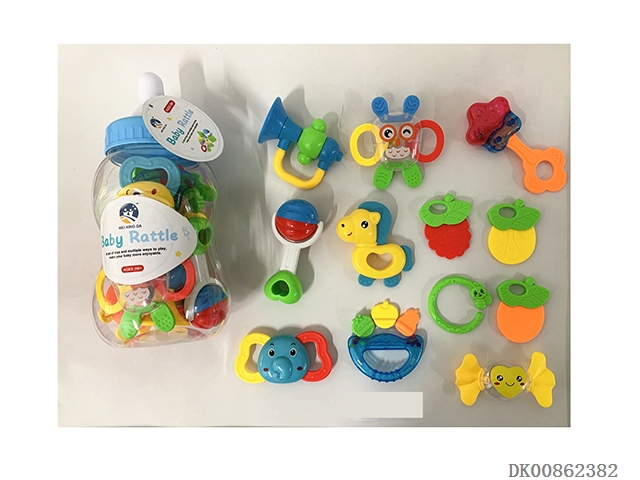 12 Rattles (4 cows, rattles, owls, monkeys, gum deer, mobile phones, soft rubber balls, flower baskets and bracelets)