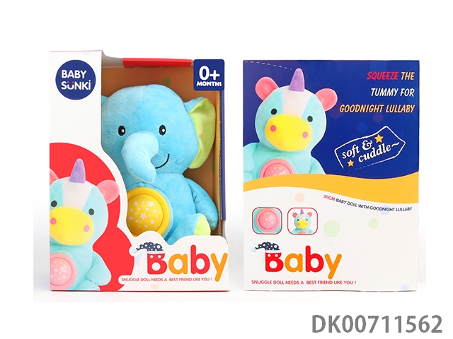 Plush sound and light soothes the little blue elephant