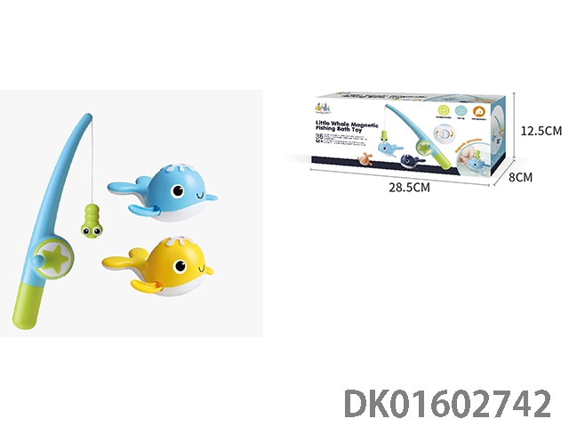 Frog net fishing with fishing rod and 2 fish (light blue and yellow, magnetic)