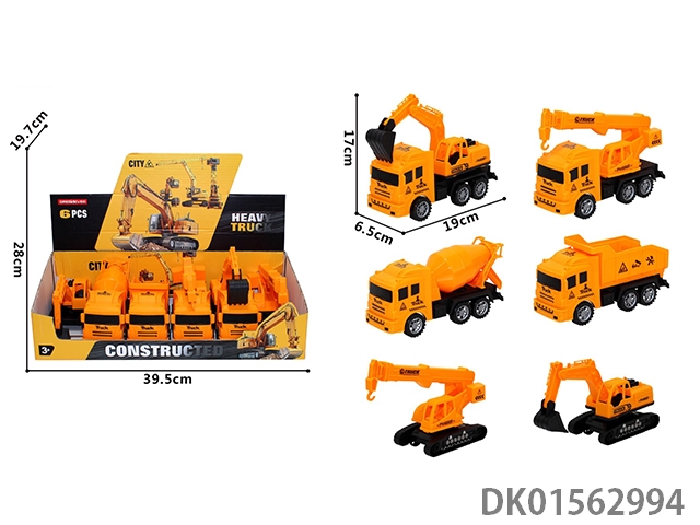 6 Types of sliding engineering vehicles, 6pcs/box