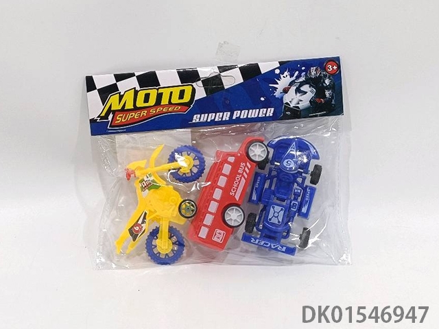 Sliding solid color motorcycle, school bus, go kart (3pcs)