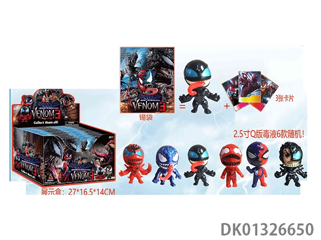 2.5-Inch q-version venom doll, single and 3 card tin bags, 24 tin bag display box cards, and 6 random dolls (pvc soft rubber environmentally friendly material), 24pcs/box