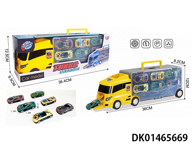 Storage container truck, six alloy sports cars