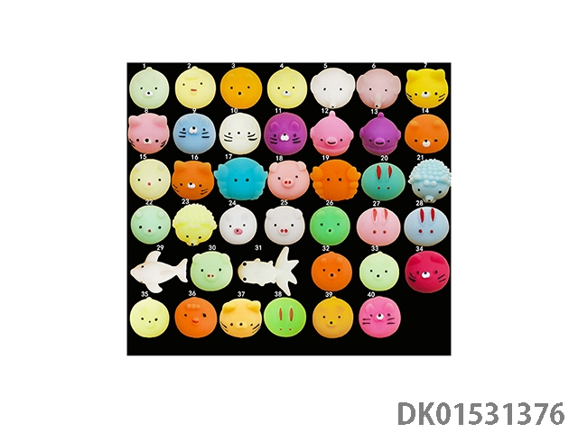 Mini emojis, small balls, kneading music