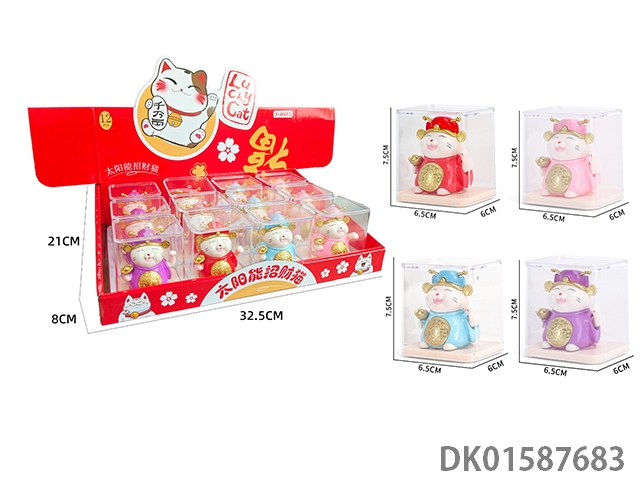 2.4-inch solar powered lucky cat (golden gourd) comes with 12 double-sided stickers per box