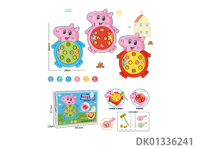 Cute pig electric rotating music fishing disk&groundhog 2-in-1