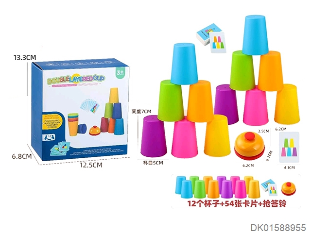 Double player battle stacking cup game with buzzer answering bell