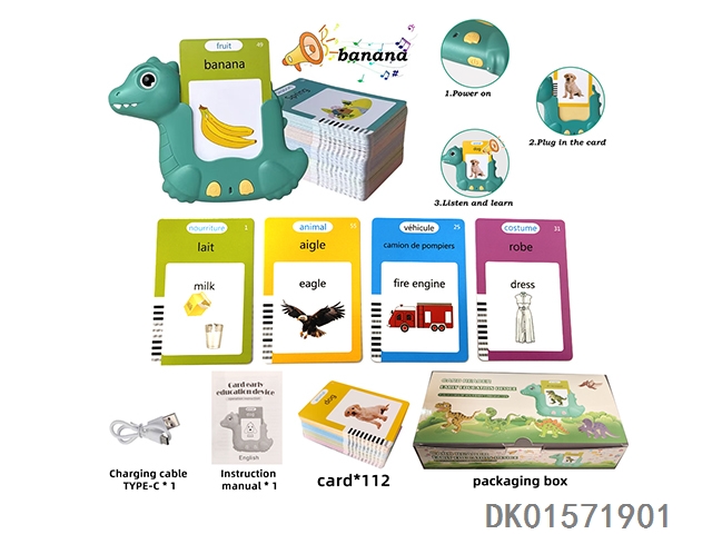 French and english ic dinosaur 112 cards 224 side content english flash cards puzzle early education card machine insert learning machine (3.7v lithium battery pack)