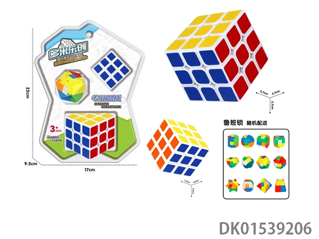 Third order solid color rubik’s cube, small square, and luban lock